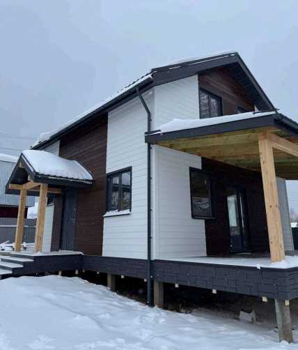 2. Готовый фасад дома выполненный из натуральных материалов.