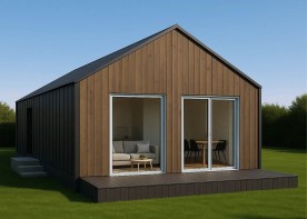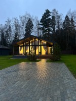 Основная специализация — строительство современных каркасных домов в скандинавском стиле с панорамными окнами.