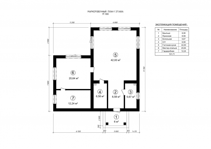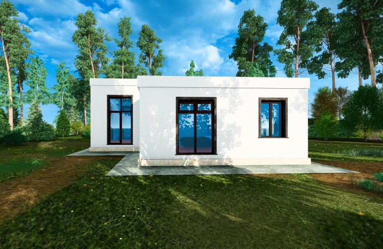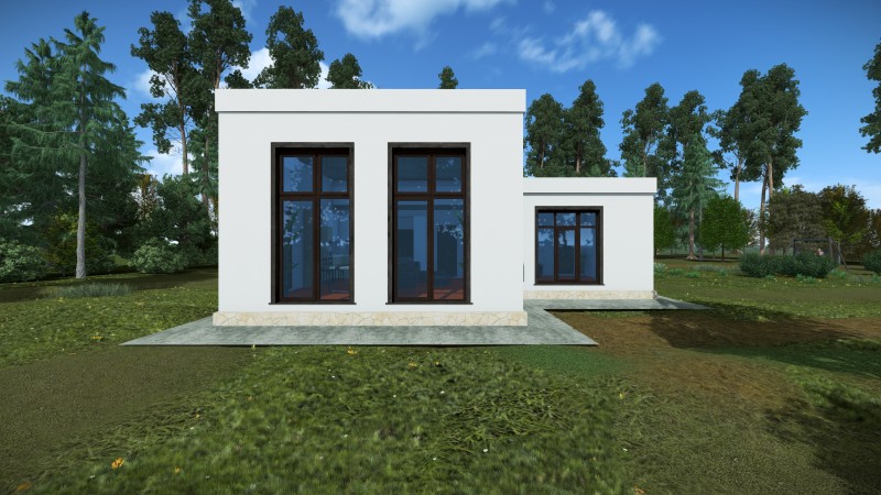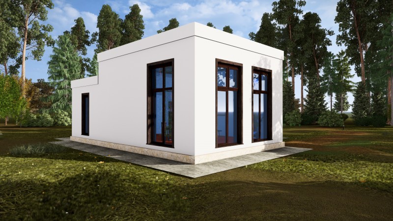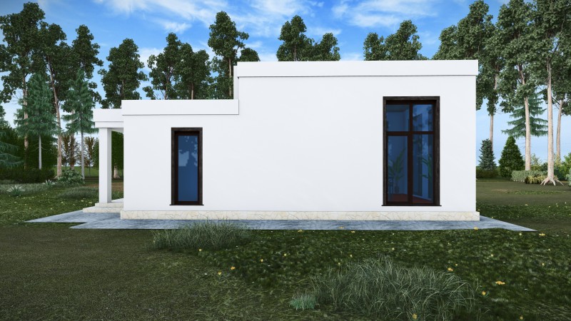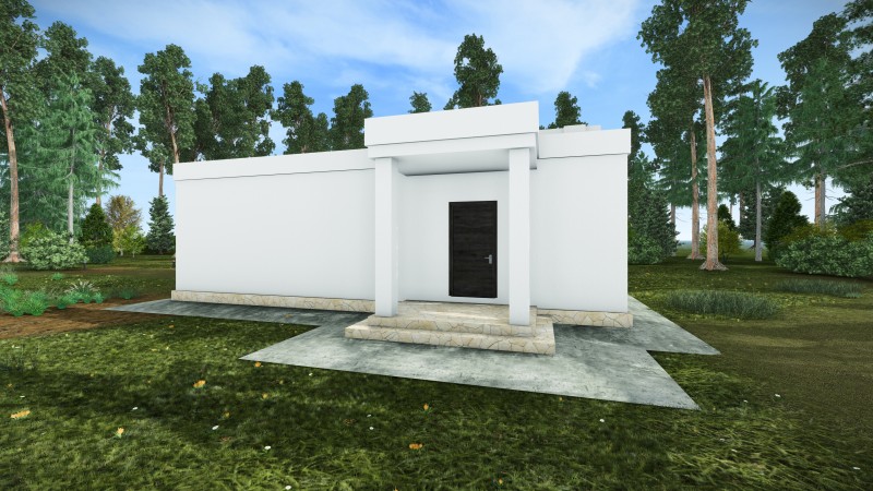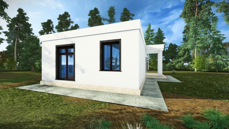Здание представляет собой одноэтажный жилой дом. В доме запроектированы крыльцо, прихожая, кухня-гостинная, котельная, санузел, мастер-спальня,гардеробная. Кровля дома - плоская, не эксплуатируемая. Фундамент монолитная ж/б плита.