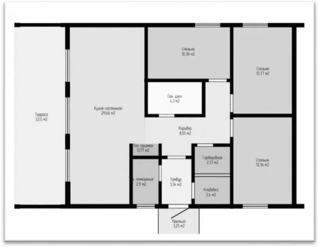 Барнхаус 115 м² — это современный одноэтажный дом в стиле барн, который гармонично сочетает в себе функциональность и эстетику.