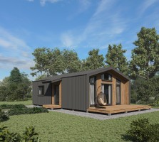 В доме просторная кухня-гостиная, две спальни, прихожая, бойлерная и отдельный санузел.