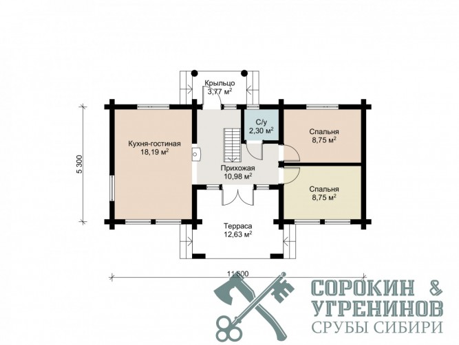 Индивидуальный дом рубленый из лафета кедра сечением 220х350мм, площадь дома 86м2. Размер сруба 5,3х11,6 метров. Два этажа, второй мансардный с вторым светом и балконом. Скромная планировка дома, небольшие две комнаты на первом этаже, гостиная, санузел, прихожая и веранда, и две маленькие комнаты на мансарде. Этот домик может быть отличным украшением любого участка и для любимых гостей.
