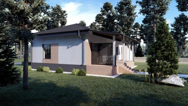 Рады представить нашу новинку — проект одноэтажного дома с мастер — спальней, оборудованной собственным с/у и гардеробной. Отличительной особенностью этого дома также являются французские окна с выходом на террасу из двух спален и кухни — гостиной, имеющей эргономичную форму, позволяющую визуально разделить зоны приготовления пищи, столовой и отдыха. В функциональной котельной помимо инженерного оборудования можно свободно разместить домашнюю прачечную, зону хранения и даже лапомойку для любимых питомцев. Фасад дома может быть выполнен как в классическом кирпиче, так и в штукатурке. Возможна зеркальная планировка. Глухая боковая стена позволяет в дальнейшем пристроить навес для автомобиля или гараж на 1-2 машиноместа.